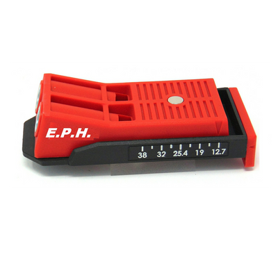 - Échelles de réglage métriques faciles à lire. Elles vous aident à évaluer la profondeur exacte à percer pour le matériau que vous assemblez sans avoir besoin d'utiliser un ruban à mesurer