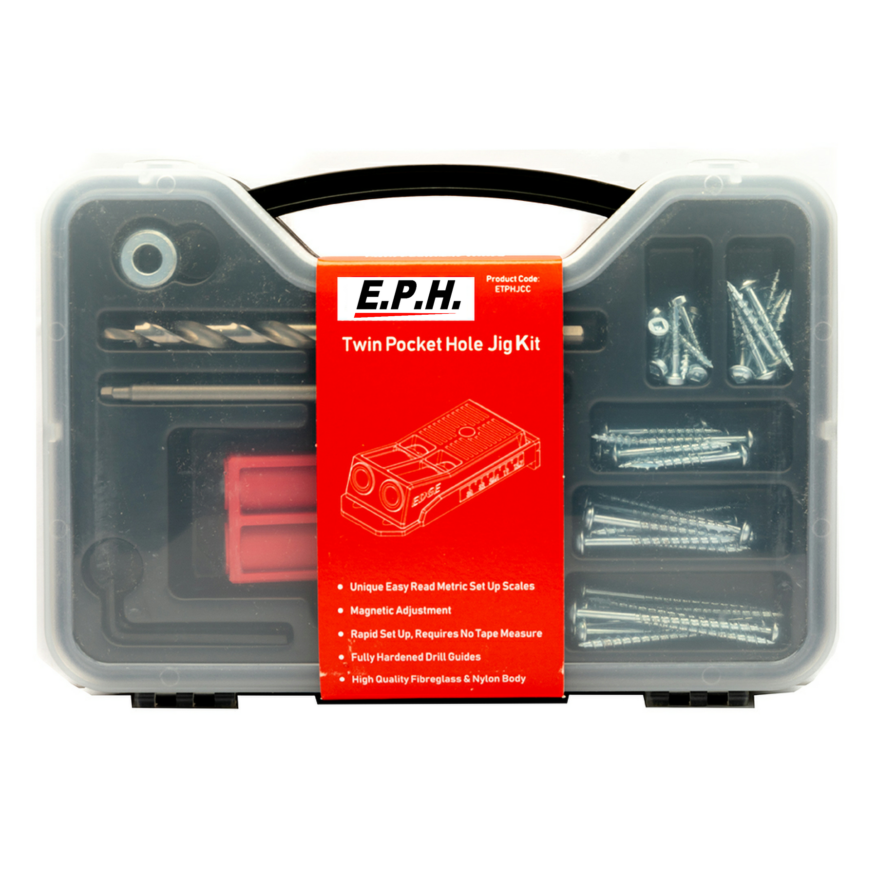 Le foret de perçage de poche EPHHEXDRILL fourni est unique sur le marché grâce aux marquages de profondeur gravés au laser, vous permettant de régler rapidement et précisément la profondeur de perçage. Cela vous aide à éviter les erreurs en installant le gabarit de perçage de poche sur la pièce à usiner pour la taille exacte de la vis dont vous avez besoin
