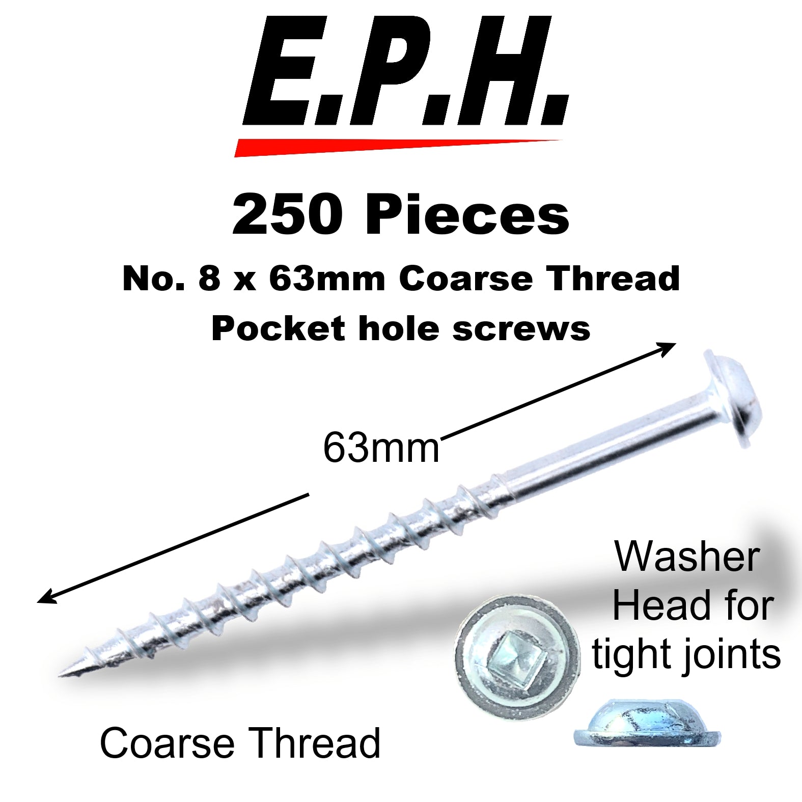 🛠️ Get clean, strong joinery results with E.P.H. No.8 x 63mm Coarse Thread Pocket Hole Screws