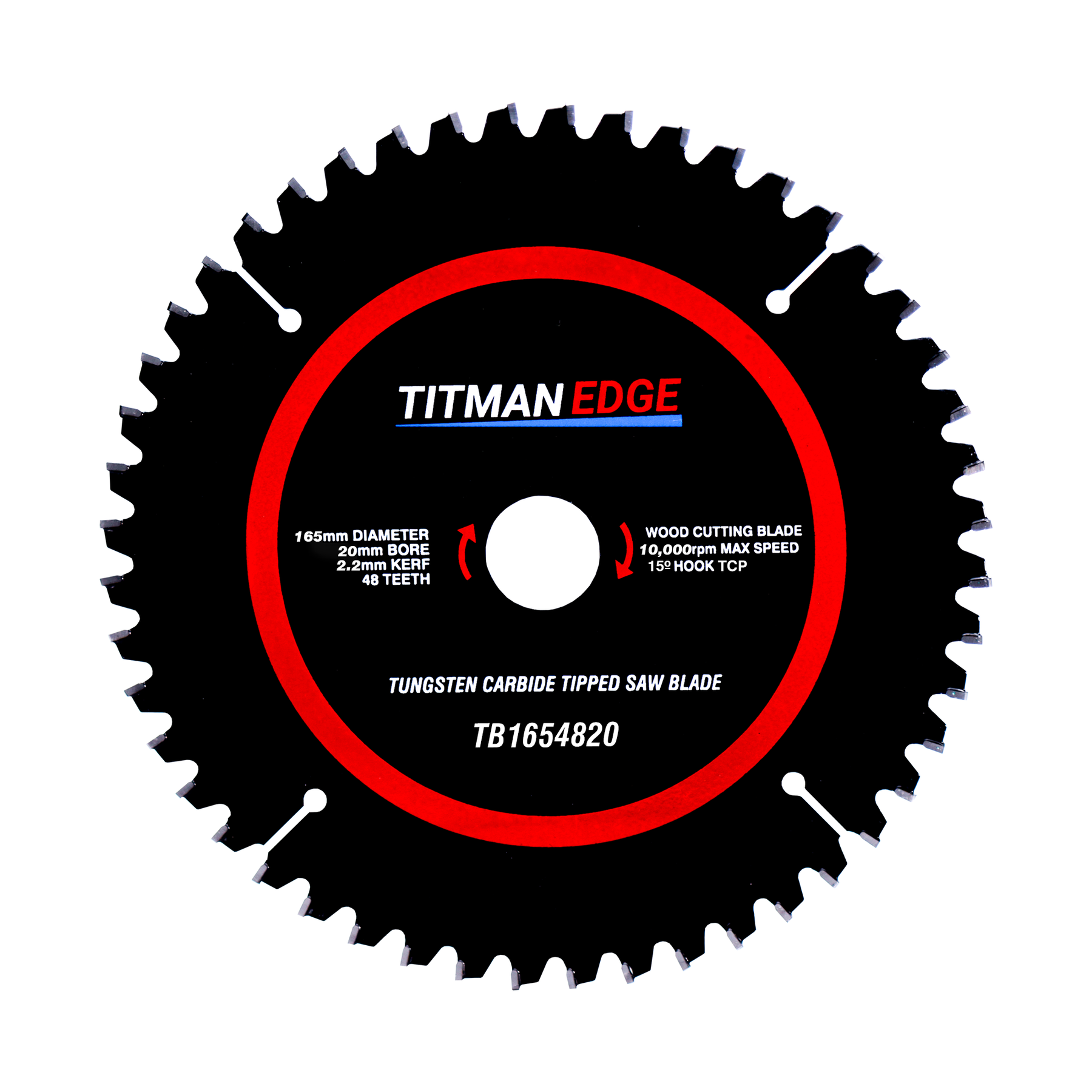 Titman Edge TCT Fine Finish Circular Saw Blade 165mm diameter, 20mm bore, 48 tooth with non-stick coating. For hand-held circular saws.